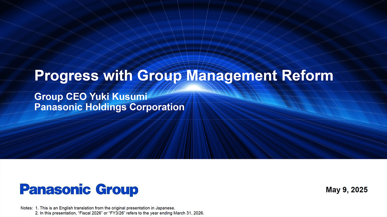 Group CEO Yuki Kusumi communicated the progress being made on group management reforms and expressed his firm resolve to undertake necessary initiatives to break free from 30 years of stagnation and position the Panasonic Group for strong and renewed growth for the future. We spoke with him to learn more about his intentions, his message to employees, and his determination for the future of the Panasonic Group.