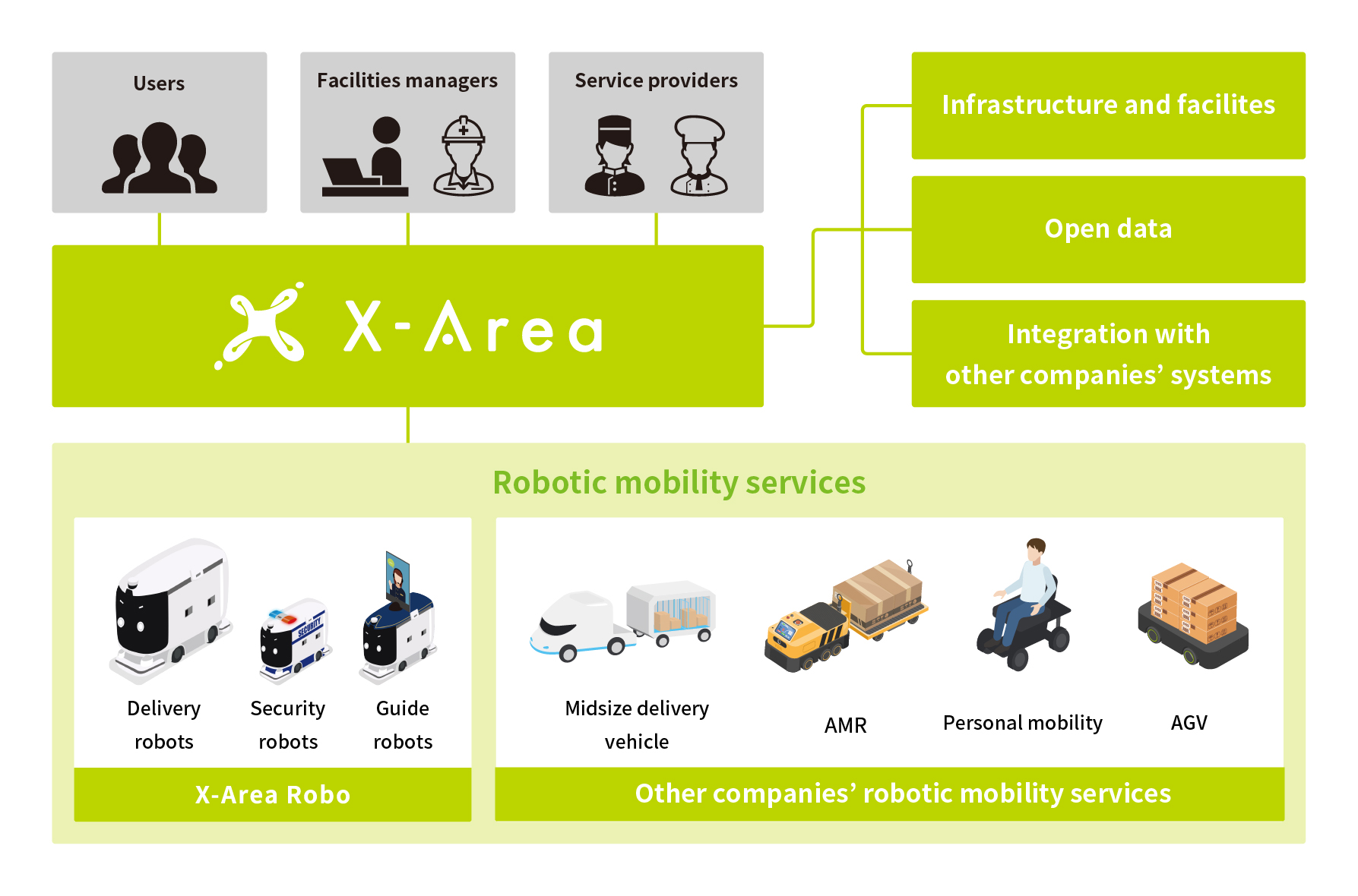 Our products can interface with a variety of robotic mobility services from different manufacturers, allowing us to flexibly meet the needs of business operators.
