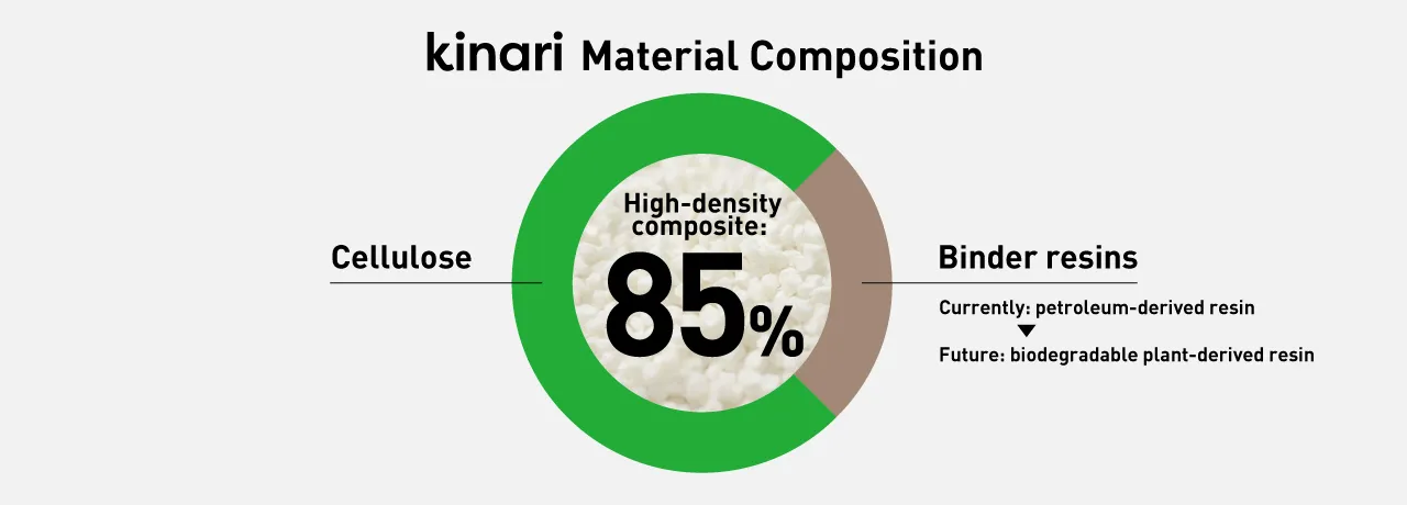 Aiming to reduce our usage of petroleum-derived resins, the Panasonic Group has developed a high-performance plant-based material in the form of a cellulose fiber resin we call kinari.