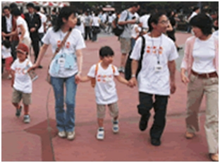 This project began in 1994 to allow children with physical and intellectual disabilities, children who have few opportunities to go out due to their illnesses, and adult volunteers to form groups and enjoy attractions while interacting with each other in the park. Matsushita Electric provided support for this activity since its first installment, with employees participating as volunteers.