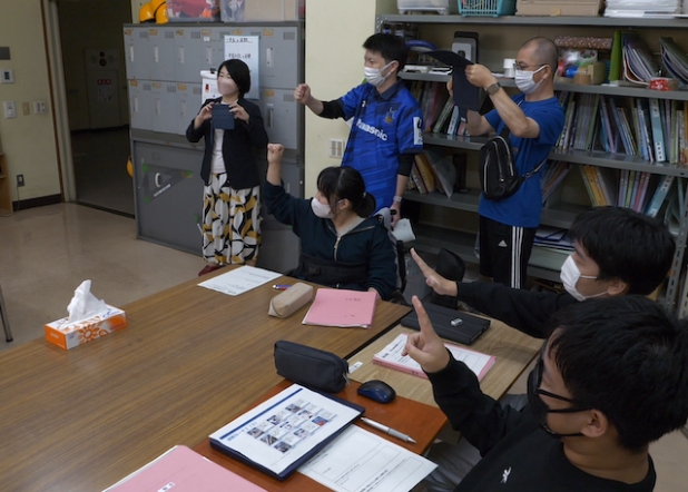 A Discover My Path Program × KWN Workshop was held at a special needs school in Saitama Prefecture, with seven students from the 1st, 2nd, and 3rd years of high school participating. In the class, students reflected on how their present connects to their future, and they engaged in individual work to think about where they want to be in 15 years. They learned about teamwork and role-sharing through interviews and video production experiences.