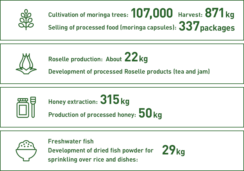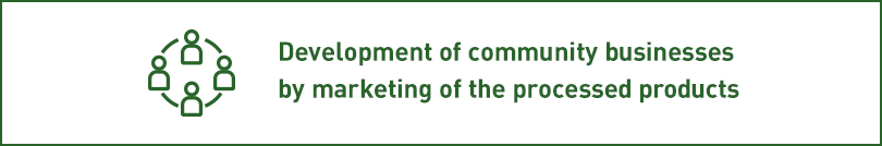 To improve the income of local communities facing financial difficulties, we will further accelerate project activities through ensuring the sustainable production of processed food and develop sales channels to share the profit with the local communities.