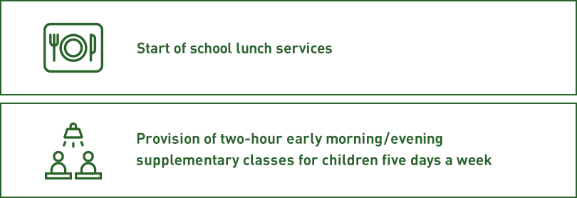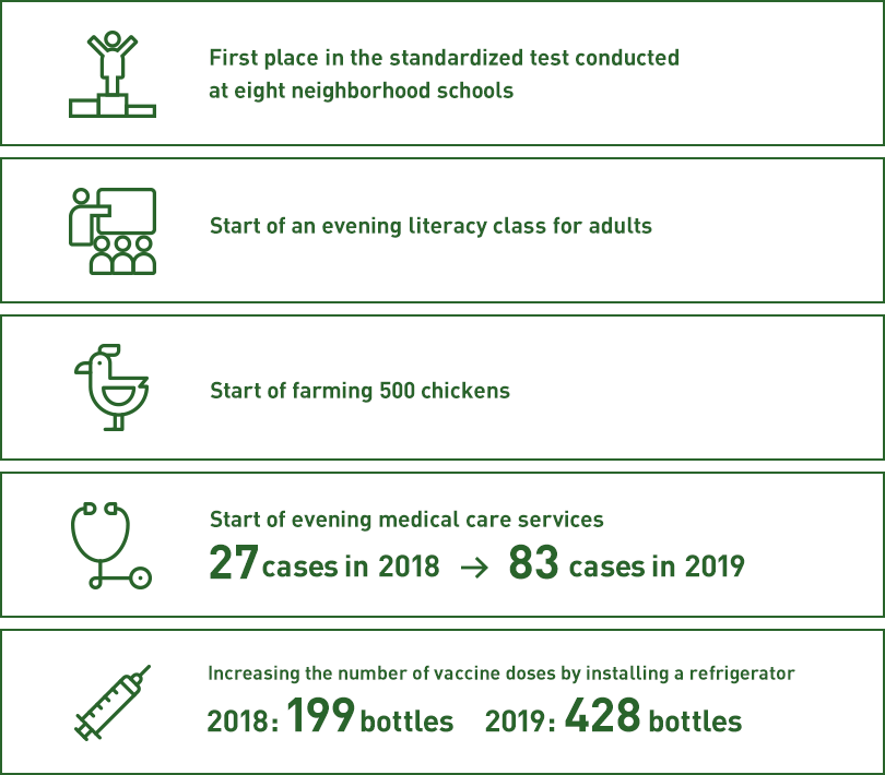 Based on the activity plan, the community has been supported to start farming on the school premises by using a solor-powered water pump, and that contributed to harvesting tomatoes.The community were able to make profits by selling the yield, and the school managed to start daily lunch services by using the profit.