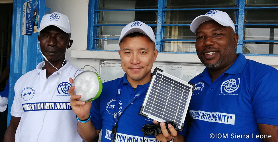 During Panasonic’s earlier 100 Thousand Solar Lanterns Project, IOM Sierra Leone thankfully received donation of solar lantern. This is the second time for Panasonic to donate solar lanterns. In the first donation, IOM provided solar lanterns to people living in temporary housing after having been displaced by the 2015 floods. IOM also provided solar lanterns to health centers, where they proved extremely useful for nighttime medical treatment and for delivering newborn babies. When the first solar lanterns were delivered, people were so happy and danced for joy. Of course, one reason they were so happy was that the solar lanterns’ light provided convenience and safety. Many snakes come out at night, making very dangerous to walk about with no light. Another important reason for their joy was that they felt they had not been forsaken. Having lived in temporary housing for over 3 years since the 2015 floods, they were in a fear and uncertainty, but the arrival of this Panasonic solar lantern through IOM — and the presence of people who were following up on that support — provided a light to warmly illuminate their hearts.