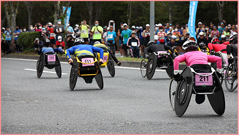 A road race first held in 1988 in which wheelchair and regular runners run on the same course. Began sponsorship in 1996, and Panasonic Kibi Co., Ltd. has taken the lead in running the event secretariat since 1998.