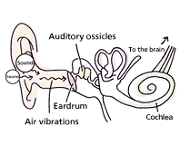 There are so many sounds all around us. The sounds of cars, footsteps, bouncing balls, and so on. We hear sounds with our ears. But the air is what actually carries sounds to our ears so we can hear them. Deep in the ear is the eardrum. The eardrum is necessary to hear sounds. Sounds make the air vibrate like waves on an ocean. The air vibrations in turn vibrate the eardrum, which we sense as sound. We hear all kinds of different sounds — high-pitched sounds, low-pitched sounds, noisy sounds, quiet sounds — because each sound creates air vibrations of different sizes and intensities.