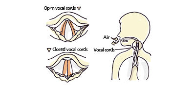 Try touching your throat as you say “Aaah”. You will feel that your throat vibrates a little. That vibration is the starting point of your voice. Each time we breathe out, air passes through our throat. There are folds in the tissue of your throat called vocal cords. When air from your breath hits the vibrating vocal cords, the air also vibrates. But your voice is not formed just by air hitting your vocal cords. Your voice is also made by the shape of your tongue, the shape of your lips, how open your jaw is, and the air passing through your nose. These things combine to change the sound of the air that comes out of your mouth. This creates different kinds of voices.