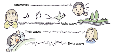 During normal activities, your brain waves are beta waves. But when you listen to gentle music, the chirping of birds, or the murmuring of a stream, these waves change to alpha waves, which can make you feel very relaxed. Two other kinds of brain waves are theta waves when you daydream and delta waves when you are sleeping.