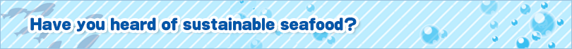 “Sustainable” is something that continues indefinitely into the future. “Seafood” are the fish and other food sources taken from the ocean and rivers. So, fish, shrimp, shellfish, and other seafood caught by fisheries that take care of marine resources and avoid damaging the environment and fish cultivated by aquaculture are food that we will be able to enjoy not only now but in the future.