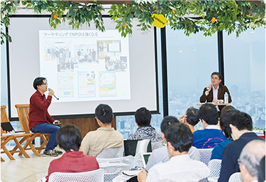 Marketing is an important activity for NPOs in order to acquire support such as donations, members, and volunteers, receive compensation for services provided and achieve the organization's mission. Therefore, we provided marketing training and individual support to NPOs with the aim of enabling them to acquire marketing skills and to share and utilize the know-how learned not only as individual skills but also throughout the organization to solve their own various organizational issues.