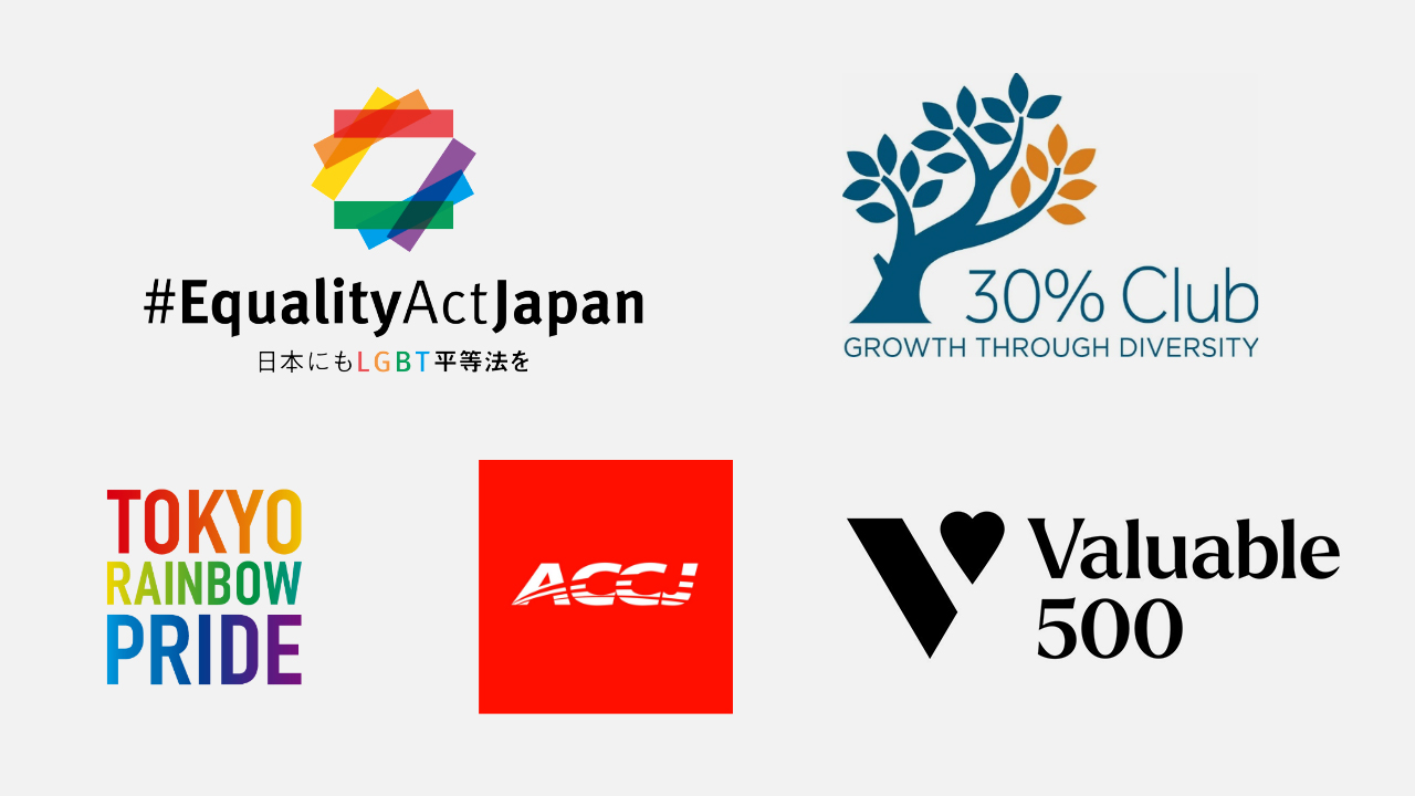 We have endorsed a number of outside initiatives, such as EqualityActJapan, Tokyo Rainbow Pride, the Recommendations of the American Chamber of Commerce in Japan (ACCJ), 30% Club Japan and the Valuable 500 (V500).