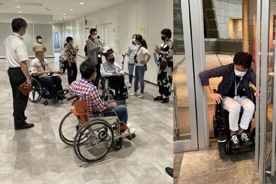 In this project, the main focus is on having employees gain new perspectives by actually trying out a wheelchair for themselves, as well as on deepening the awareness and thoughts of each participant as they survey the site. Participants share their findings through in-house chat rooms, giving feedback such as, “It is safer to pass through this area,” and “This part is challenging.”
