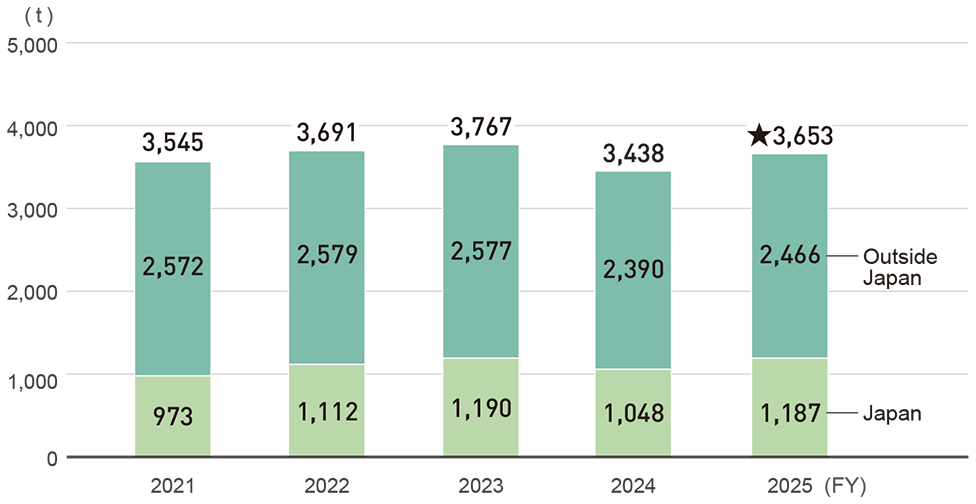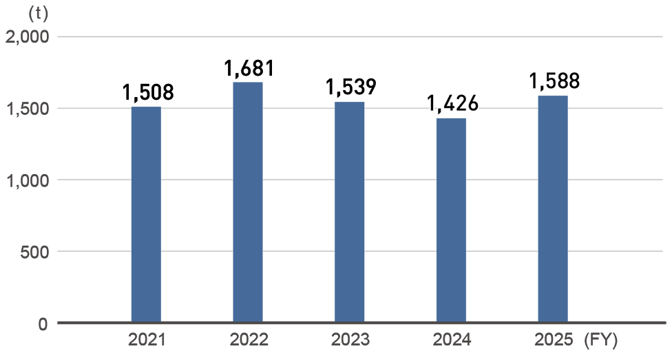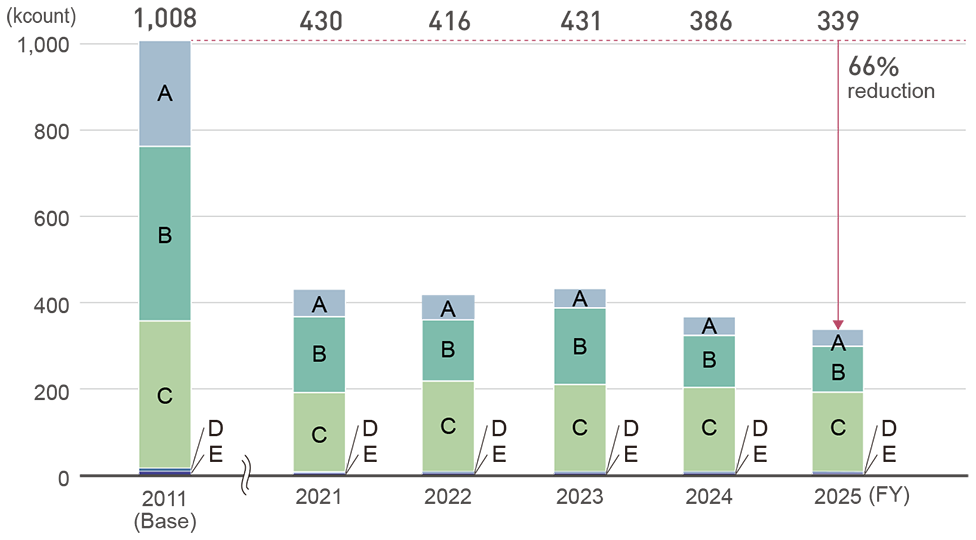 In fiscal 2025, we were able to reduce Human Environmental Impact by 66% compared with fiscal 2011. We will continue to implement our activities to minimize emissions of the substances with high environmental loads from our production activities.