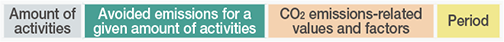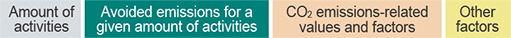Avoided CO2 Emissions (hereafter, avoided emissions) is an indicator of how much we contributed to reducing CO2 emissions (hereafter, emissions) from customers and society. We quantify this amount of contribution as KPIs of CONTRIBUTION IMPACT and FUTURE IMPACT according to the nature of the specific business (Please refer here).