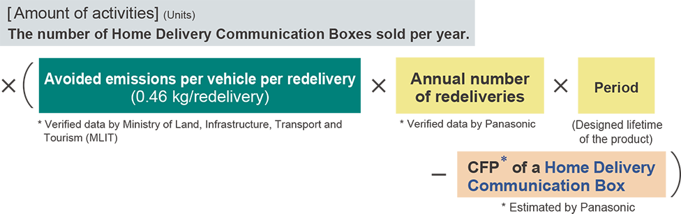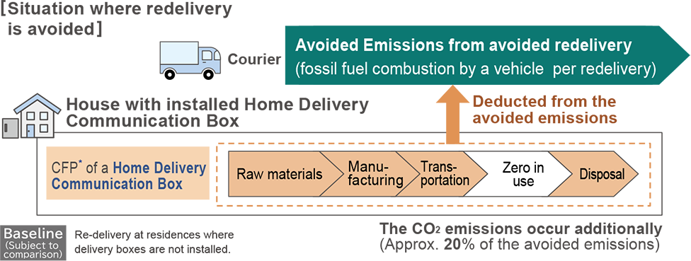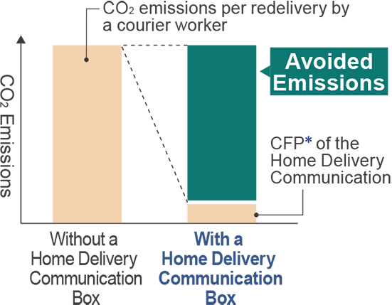 (CO2 emissions from a vehicle on redelivery by the courier worker and CFP* of the Home Delivery Communication Box)
