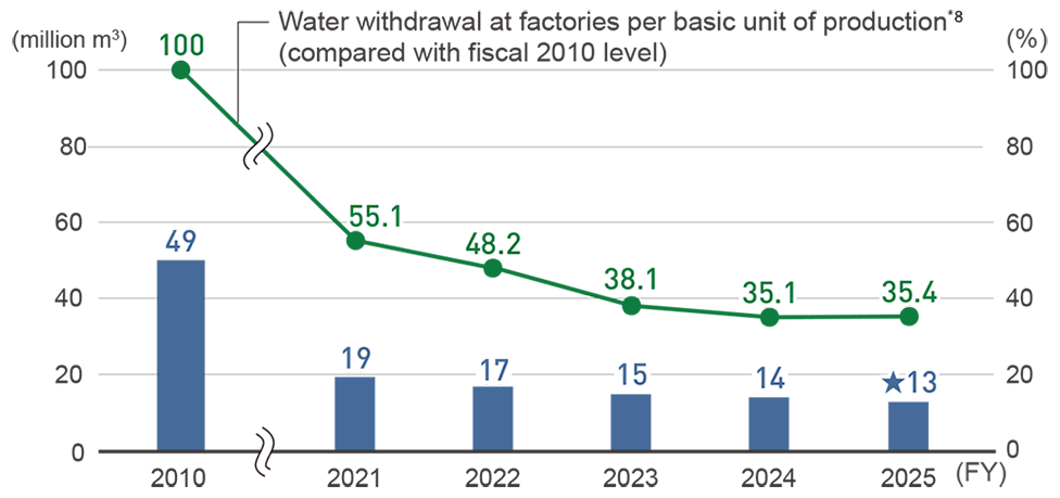 *6 Water withdrawal at factories per basic unit of production = Water withdrawal at factories/Production volume.