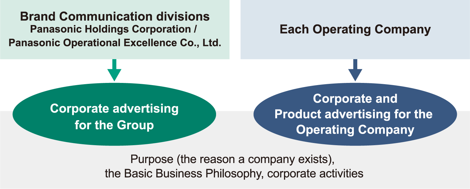 The brand communication divisions of Panasonic Holdings Corporation and Panasonic Operational Excellence Co., Ltd. are responsible for corporate advertising for the entire Panasonic Group. In a similar way, advertising personnel at each operating company are responsible for their organization's corporate and product advertising. All personnel work in cooperation with one another.