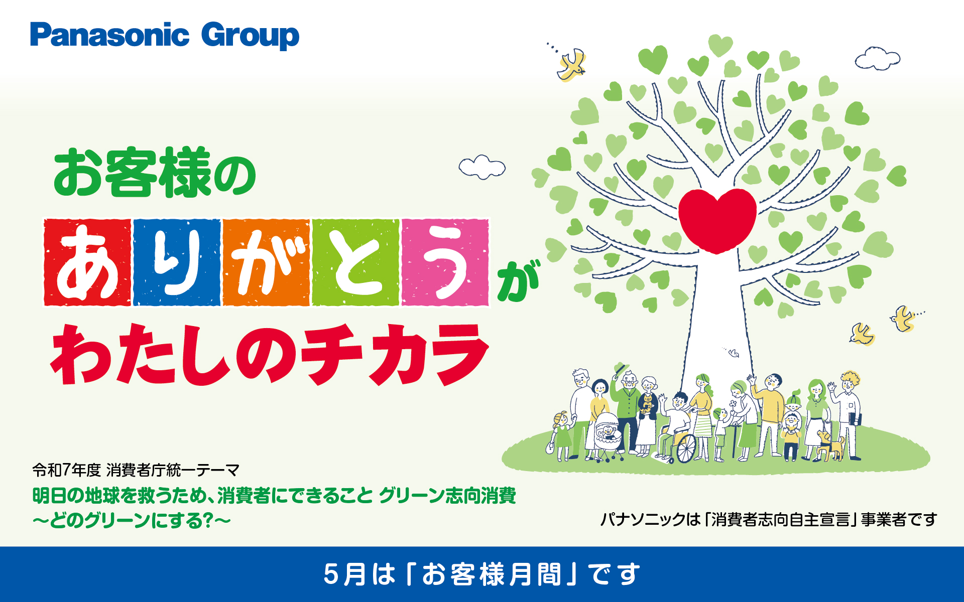 Since its founding, Panasonic has sought to contribute to society through its products and services, always prioritizing the customer’s needs above all else. The Group aims to enhance customer service (CS) and offers products, solutions, and services that enrich the lives of people worldwide. When providing CS, the Group strives for sincerity, accuracy, and speed, and it acts with humility and appreciation. This finds its basis in the CS principle of “true service” that the Group’s founder described. Our fundamental stance is thus to provide customers with trust, peace of mind, and satisfaction.