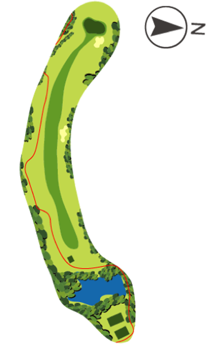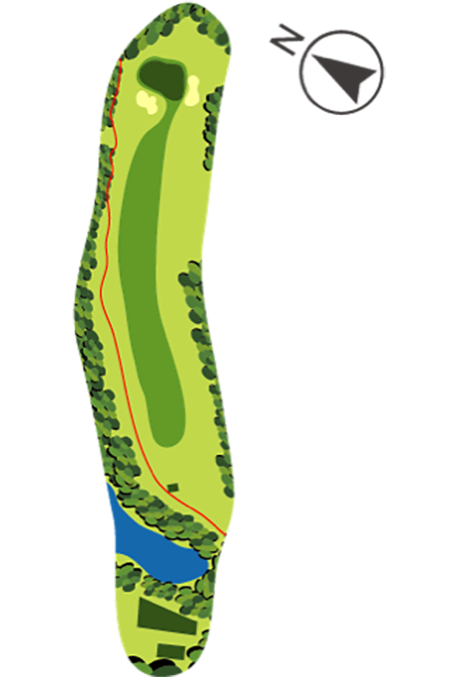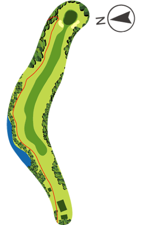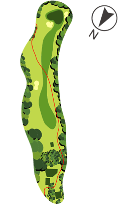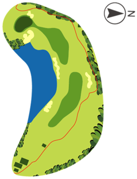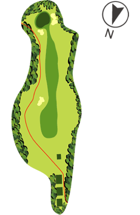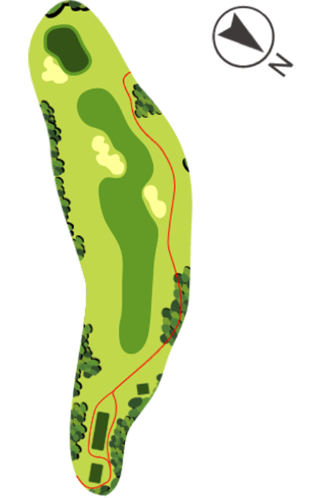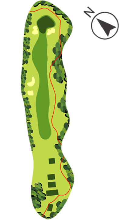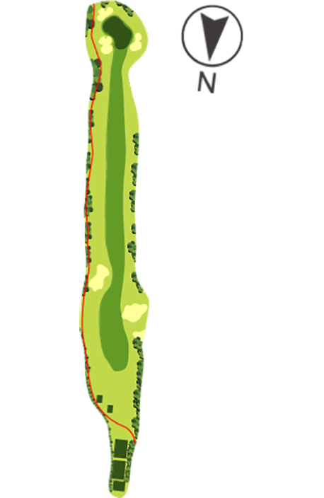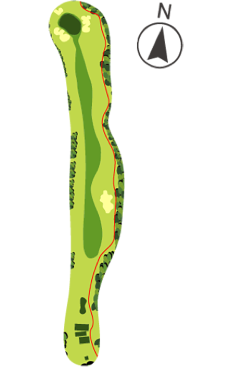 打ち上げのホールで距離もしっかりあるパー5。ティショットの飛距離が出れば2オン、イーグルも狙いたい。そのためにはFWキープも必要。セカンドショットを左道路下に落とすとボギー以上にもなり得るので、そこだけは避けたいところ。サードショットで狙う際は確実に2段グリーンのピンポジションと同じ段を捉えて、バーディトライをしたいホール。