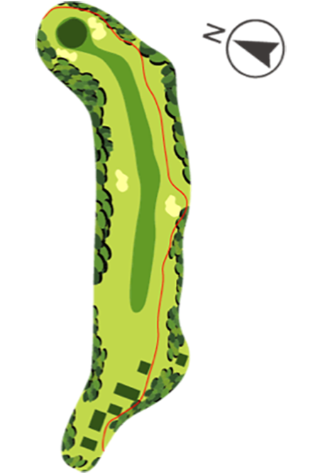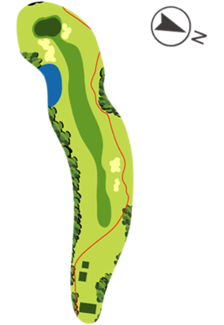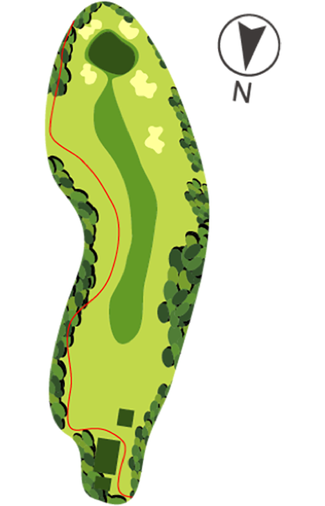 ティショットでドライバーを使用しないでも、セカンドショットはウェッジで狙えるホール。それほどリスクもないので絶対にボギーにはしたくないホール。
