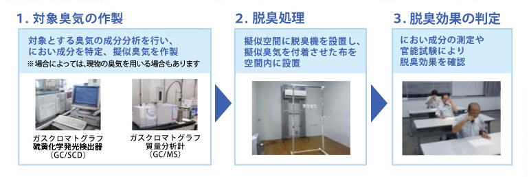 においの発生環境などを考え、評価に用いるにおい成分や性能評価条件を一緒に検討いたします。