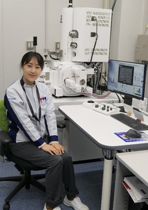 現在は、走査電子顕微鏡(SEM)に加えて、エネルギー分散型X線分光分析(EDX)、ブロードイオンビーム加工(CP)などのスキルを習得し、半導体チップ、燃料電池、イメージセンサ、LIBなどのデバイスやそれらを構成する新規先端材料の開発・品質向上に貢献しています。お困り事がある方は、ぜひ気軽に李さんに相談してみてください!