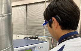 有機分析課では、材料、部品、デバイスなどの研究開発や製造プロセスで必要な有機材料の組成分析、ラジカル分析、ガス成分分析など多岐にわたった分析を行っています。