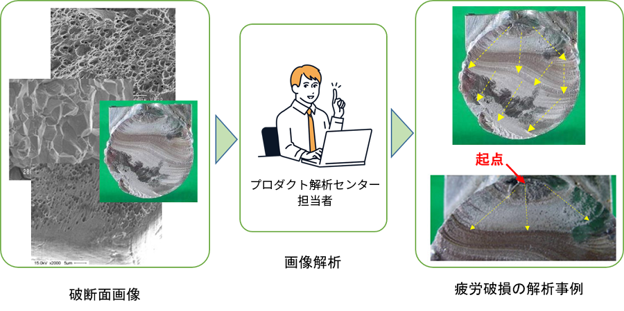 そこで本サービスでは、皆さまがお持ちの破断面の画像および発生状況をメールでお送りいただき、破断モードの分類および可能であれば起点の推定などを行います。追加の画像取得のお願いをする場合がございます。