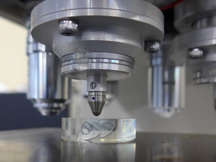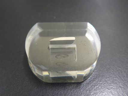 ビッカース硬度を精密に計測するためには、試料の前処理が重要です。評価試料としては、試料を切断後、樹脂に埋め込み、硬化させた後に鏡面研磨を行ったものを使用します。この理由は、試料表面に硬い薄膜コート層が塗布されていたり、金属表面に凹凸が存在しているために、正確な形状の圧痕を試料表面に形成することができないからです。また、埋め込んだ樹脂の評価面と底面の平行度も極めて重要となります。この部分が平行でない場合、試料に印加される圧力が均一ではありませんので、圧痕の形状が歪んでしまい正しいビッカース硬度を算出することができなくなります。