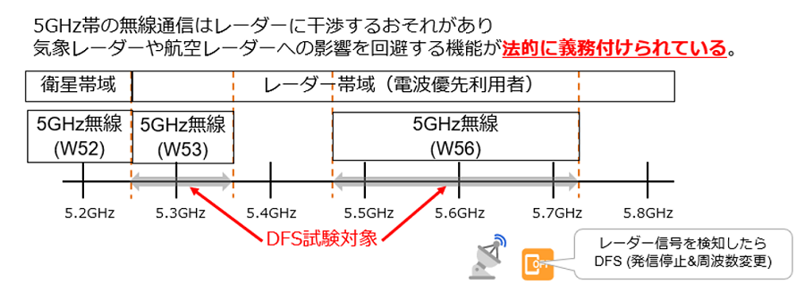 DFSはDynamic Frequency Selection=動的周波数選択の略であり、