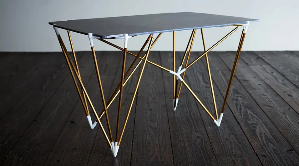 人造大理石の端材をテーブルにアップサイクル。