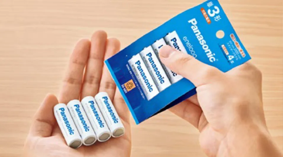また、充電式ニッケル水素電池「エネループ」では、エシカルパッケージの採用で、従来のブリスターパッケージに比べて包装材の使用量を約38〜 70%削減※1。ラインアップを拡大することで、年間で約5.7トンのプラスチックと約21.5トンの紙、合計約27トンの包装材削減を実現します。