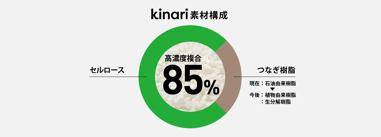 パナソニックグループでは、石油由来の樹脂使用量削減を目指して、植物由来の高機能素材、セルロースファイバー樹脂を開発、「kinari(キナリ)」の名称で提供を開始しています。