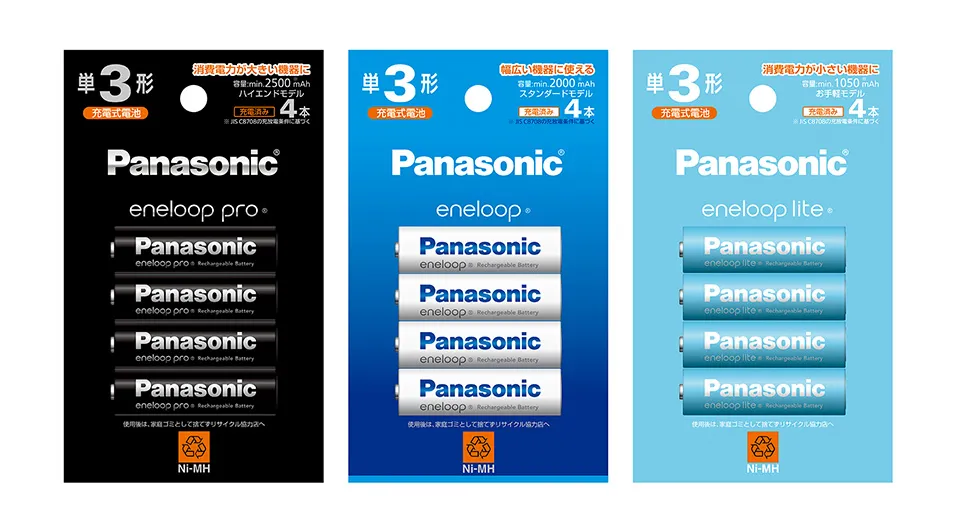 ※1. エネループプロ(BK-3HCD/4H、BK-4HCD/4H)とエネループ(BK-3MCD/4H、BK-4MCD/4H)において。従来品エネループプロ(BK-3HCD/4C、BK-4HCD/4C)と従来品エネループ(BK-3MCC/4C、BK-4MCC/4C)との比較。