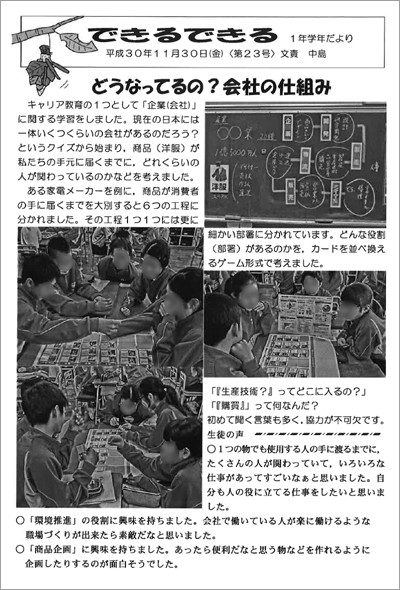 同校では、こうした授業の様子を「学年だより」に取り上げ、保護者等への発信を行っている。プログラムに取り組んだ生徒達にとっても励みになっているようだ。