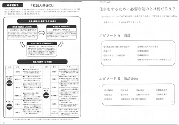 - 「プログラム②:職業と能力の関係発見」の主なねらいは、会社(社会)でそれぞれの役割を担うためにはどのような能力が必要なのかを考えることです。