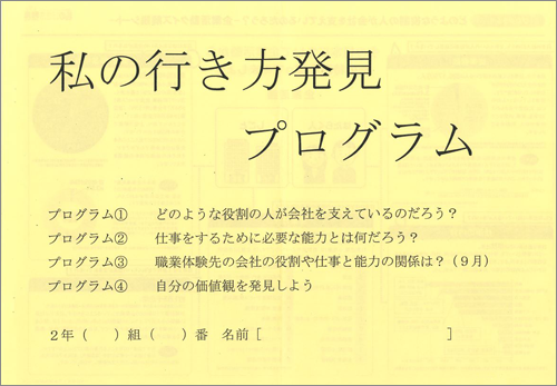 - 港中学校では2年生の9月に職業体験を行います。プログラム①、②、④は7月の期末テスト後に職場体験の導入として行い、プログラム③は職場体験の直前、体験先決定後に実施しました。