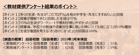 【ポイント1】多くの生徒・先生が「このプログラムを他の中学生・先生にすすめたい」と回答