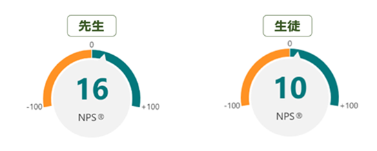 ■NPSは先生が16、生徒が10の結果に。平均がマイナスの値になる傾向がある当調査でプラス評価は満足度の高さを示していると言える。