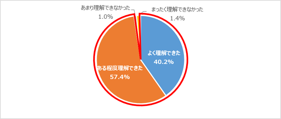■40%の生徒がプログラムの内容を「よく理解できた」57%の生徒が「ある程度理解できた」、合計で97%の生徒が理解できたと回答した。