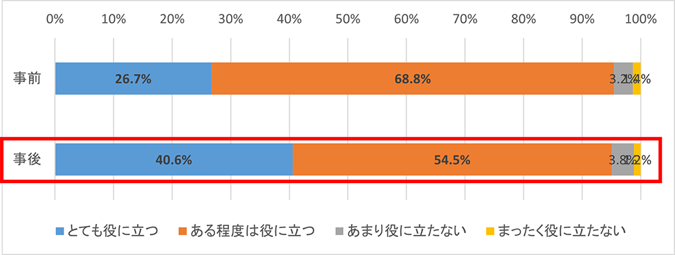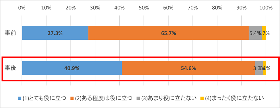 【ポイント4】授業後、学校での勉強や活動が仕事に就いた時に「とても役に立つ」が14%増加
