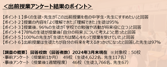 【ポイント6】出前授業は生徒たちが自分の将来を考えるきっかけになったと回答した先生は97%
