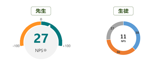 ■NPSは先生が27、生徒は11で、特に先生の満足度は非常に高かった。