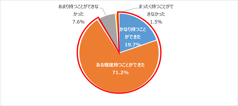 授業のテーマである「勉強と仕事のつながり」については、91%の先生が生徒は「具体的なイメージを持つ事ができた」と解答した。ここでも授業のテーマが生徒によく伝わったことがわかる。