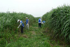 この活動は神奈川県横浜治水事務所と県民が協働で行う鶴見川鴨居高水敷の植生保全事業の趣旨に賛同し、NPO法人鶴見川流域ネットワーキングとの連携で年4回以上行っています。オギなどの在来の貴重植物を保全するため、外来種の抑制を図る草取り、クリーンアップを実施しています。