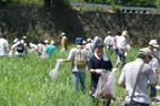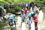 天の川流域の水棲生物を観察し、天の川に豊富な生き物がいること、また川の状態が改善方向に向かっていることに気づいてもらい、川を大事にする心を養う活動を行っています。