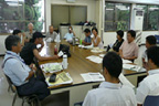 福岡市の呼びかけにより、「緑のカーテン」を広げる運動に参画ており、身近で手軽なLE活動として、多くの社員が水やり当番として参加して 約150のプランタンにゴーヤや朝顔を育てています。この緑のカーテンにより、冷房効果を助成し、省エネによる社内のCO2削減に貢献ができています。