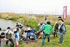 淀川河川敷、ワンド内の外来種調査や清掃活動などを行っています。