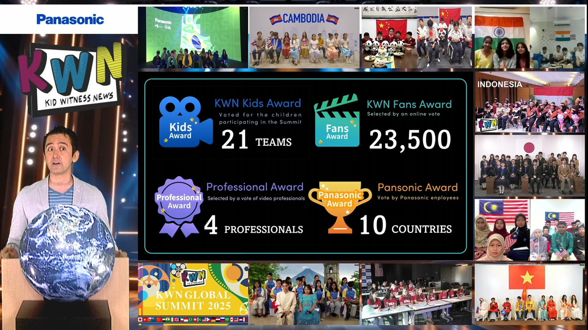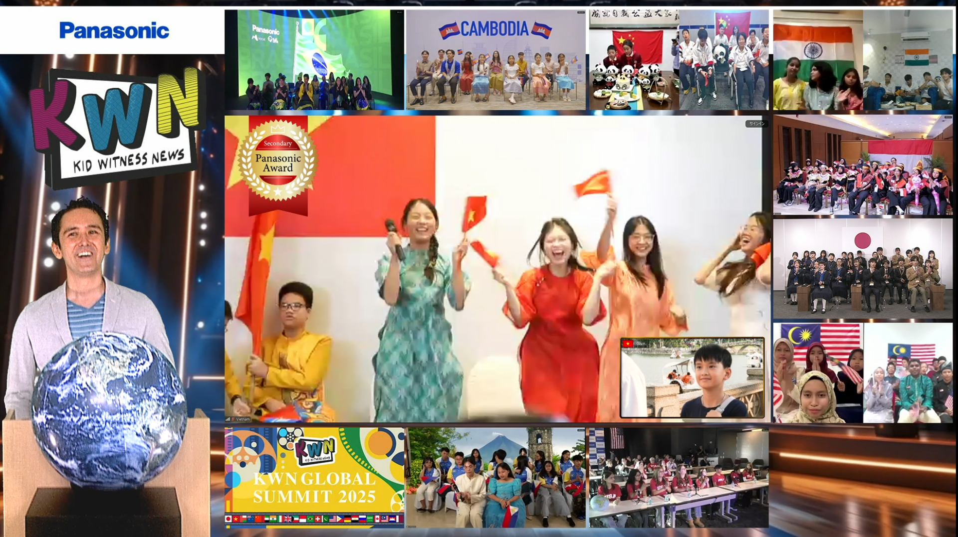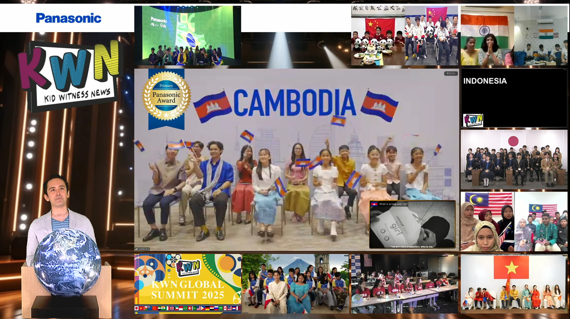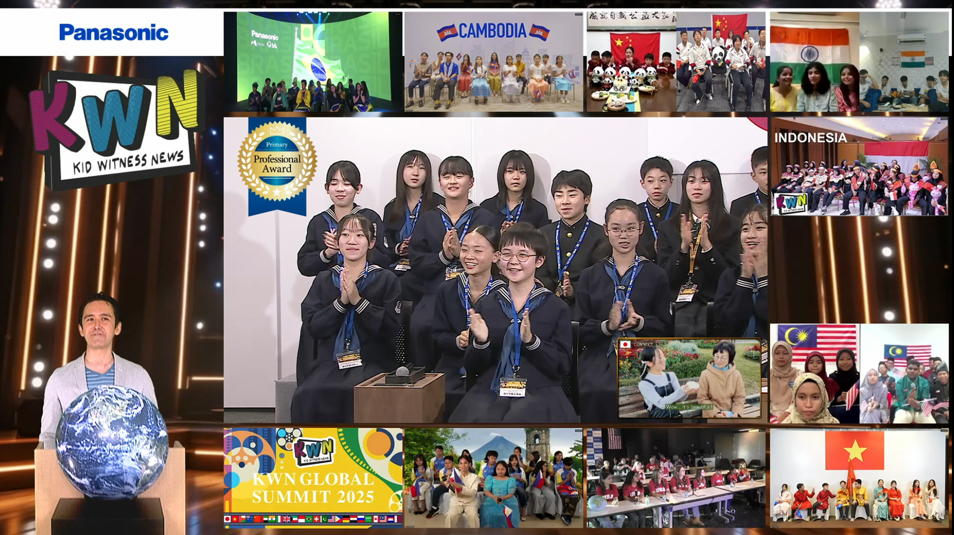 世界各国の子どもたちが参加するKWNグローバルサミット2025が、今年も昨年に引き続きオンラインで開催されました。今年は、地球のかたちをしたボールをみんなで回して「世界がひとつにつながる」というメッセージを伝えました。