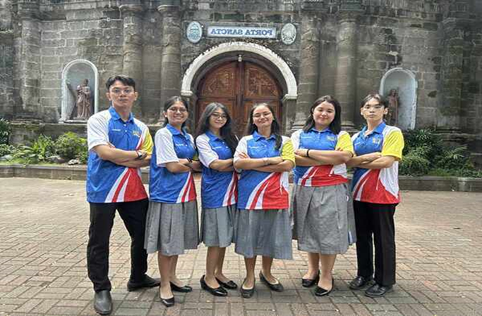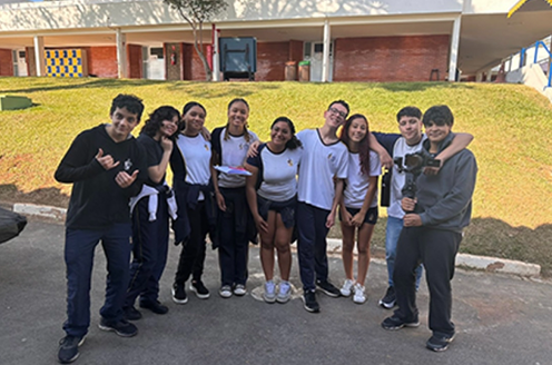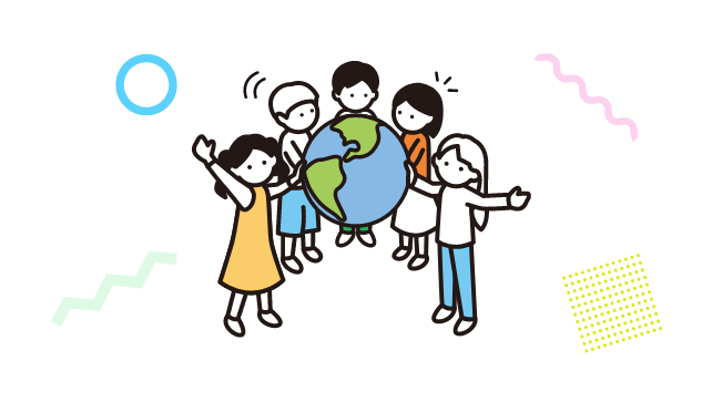 地球のかたちをしたボールをバトンパスしながら